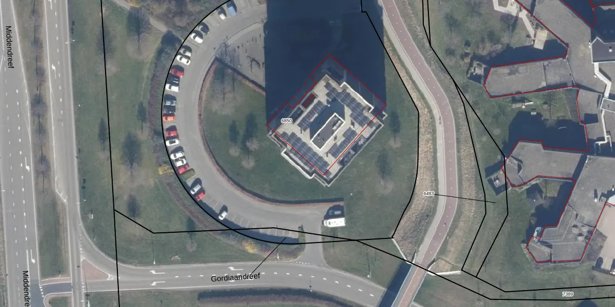 Het adres ligt op het perceel LLS00-O-6850, dat zich in de kadastrale gemeente Lelystad bevindt. Het perceel is kleiner dan gemiddeld in Lelystad. Het perceel is 6476 m² groot, terwijl het gemiddelde ligt op 2,1 ha. De grootste perceeloppervlakte in de kadastrale gemeente is 78,50 km². De kleinste oppervlakte bedraagt 0 m². Op het perceel zijn 65 adressen aanwezig. De huidige grenzen van het perceel zijn digitaal in de Basisregistratie Kadaster (BRK) geregistreerd op 13-09-2006.