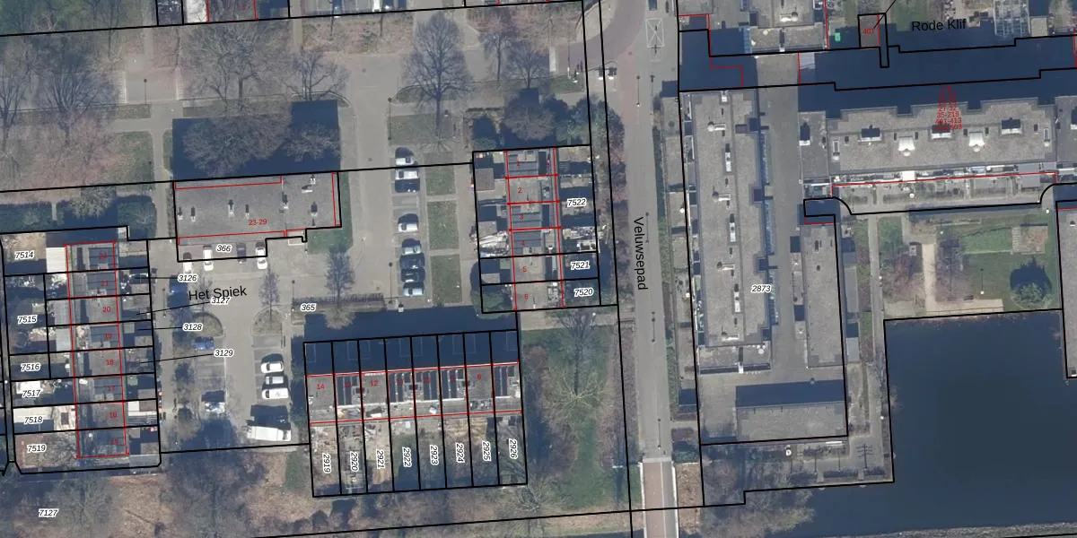 Gebruik de zoekbalk of klik op een perceel voor informatie over de adressen binnen dit perceel.