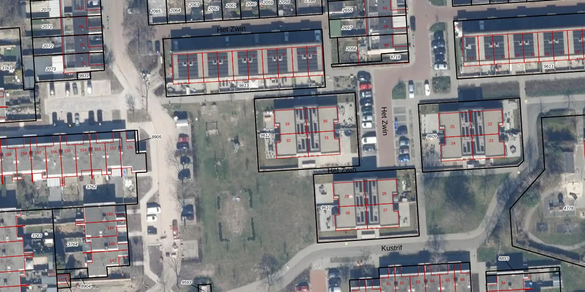 Het perceel waarop Het Zwin 32 staat heeft een oppervlakte van 869 m². Dit is een groot perceel. De perceeloppervlakte wordt geregistreerd door het Kadaster. Gedetailleerde informatie over de maten van dit perceel kunt u vinden in het rapport Kadastrale kaart met maatvoering van Het Zwin 32.