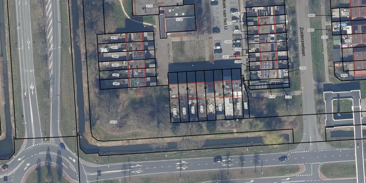 Gebruik de zoekbalk of klik op een perceel voor informatie over de adressen binnen dit perceel.
