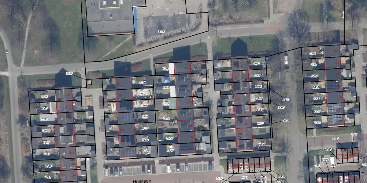 Het perceel waarop Hofstede 139 staat heeft een oppervlakte van 348 m². Dit is een groot perceel. De perceeloppervlakte wordt geregistreerd door het Kadaster. Gedetailleerde informatie over de maten van dit perceel kunt u vinden in het rapport Kadastrale kaart met maatvoering van Hofstede 139.
