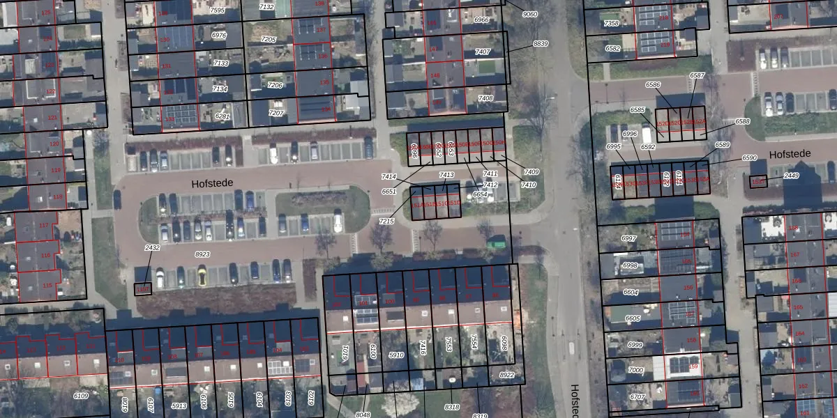Gebruik de zoekbalk of klik op een perceel voor informatie over de adressen binnen dit perceel.