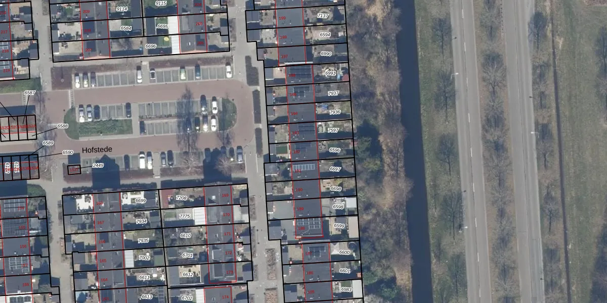 Het perceel waarop Hofstede 192 staat heeft een oppervlakte van 176 m². Dit is een middelgroot perceel. De perceeloppervlakte wordt geregistreerd door het Kadaster. Gedetailleerde informatie over de maten van dit perceel kunt u vinden in het rapport Kadastrale kaart met maatvoering van Hofstede 192.