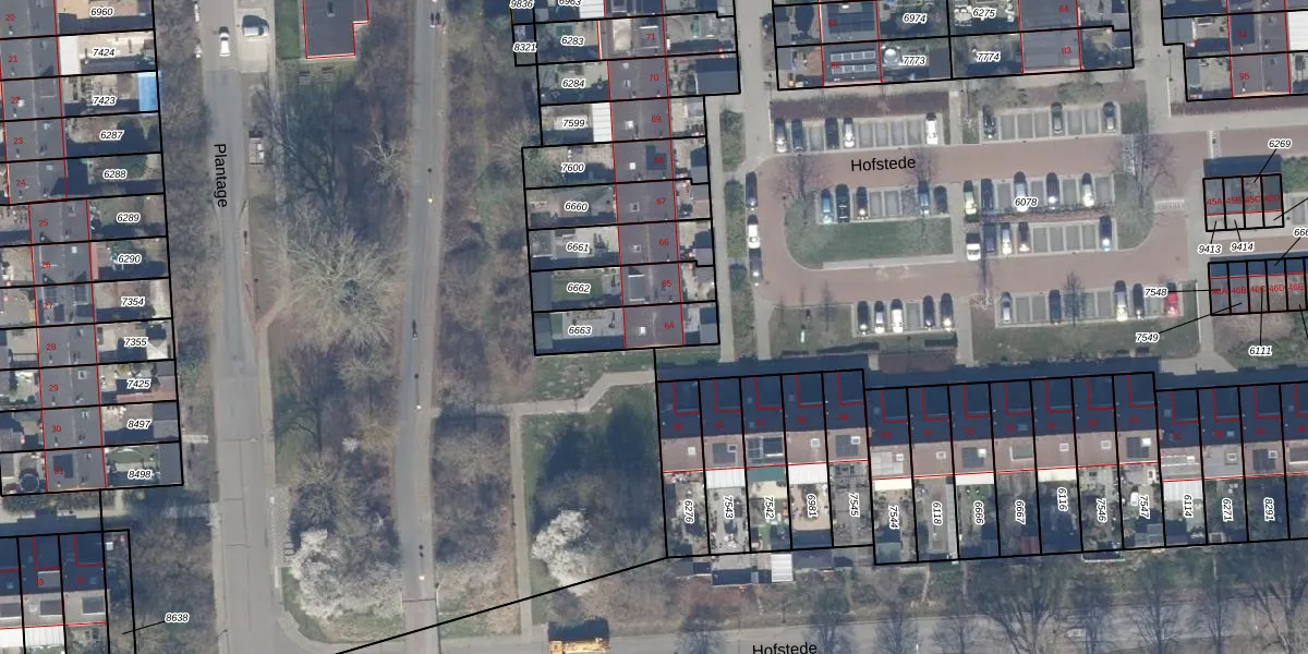 Gebruik de zoekbalk of klik op een perceel voor informatie over de adressen binnen dit perceel.