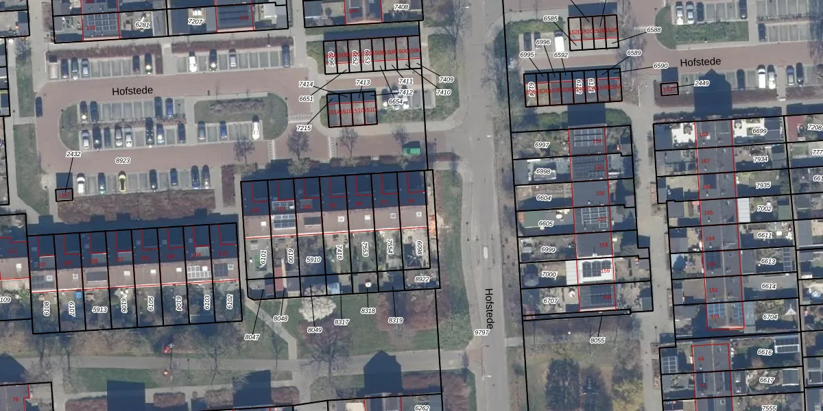 Het perceel waarop Hofstede 96 staat heeft een oppervlakte van 155 m². Dit is een middelgroot perceel. De perceeloppervlakte wordt geregistreerd door het Kadaster. Gedetailleerde informatie over de maten van dit perceel kunt u vinden in het rapport Kadastrale kaart met maatvoering van Hofstede 96.