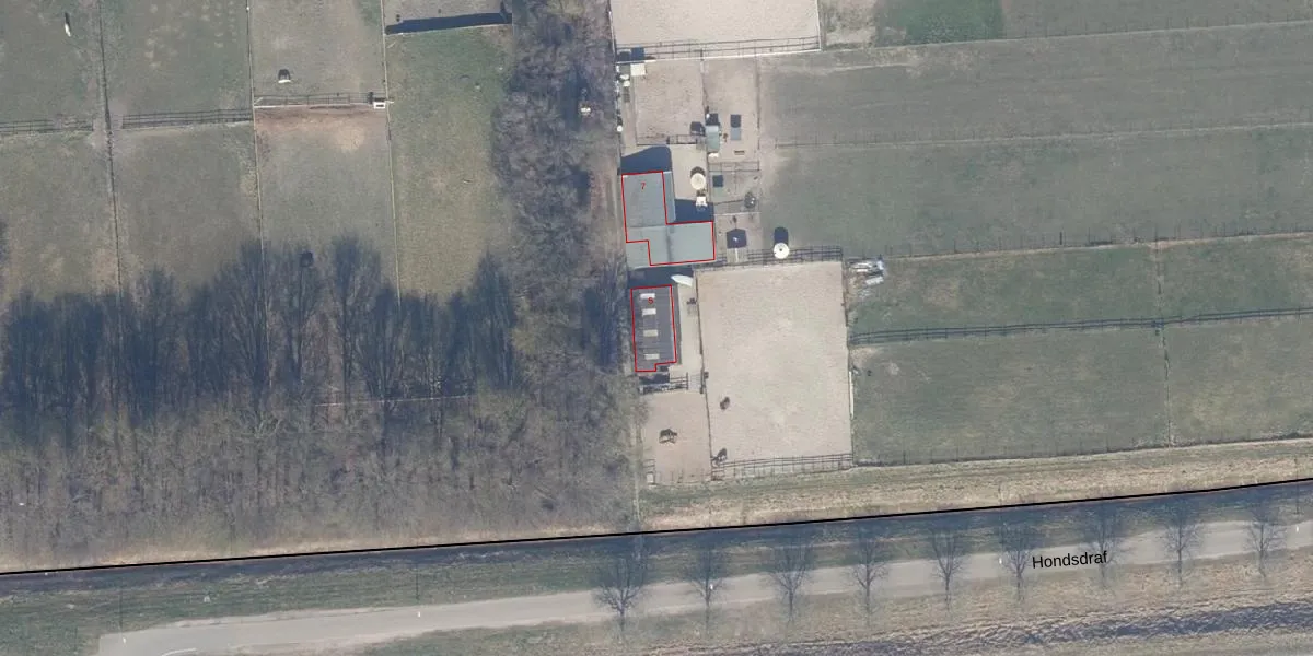 Het perceel waarop Hondsdraf 5 staat heeft een oppervlakte van 13,9 ha. Dit is een zeer groot perceel. De perceeloppervlakte wordt geregistreerd door het Kadaster. Gedetailleerde informatie over de maten van dit perceel kunt u vinden in het rapport Kadastrale kaart met maatvoering van Hondsdraf 5.