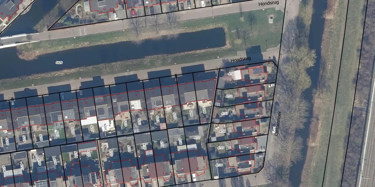 Gebruik de zoekbalk of klik op een perceel voor informatie over de adressen binnen dit perceel.
