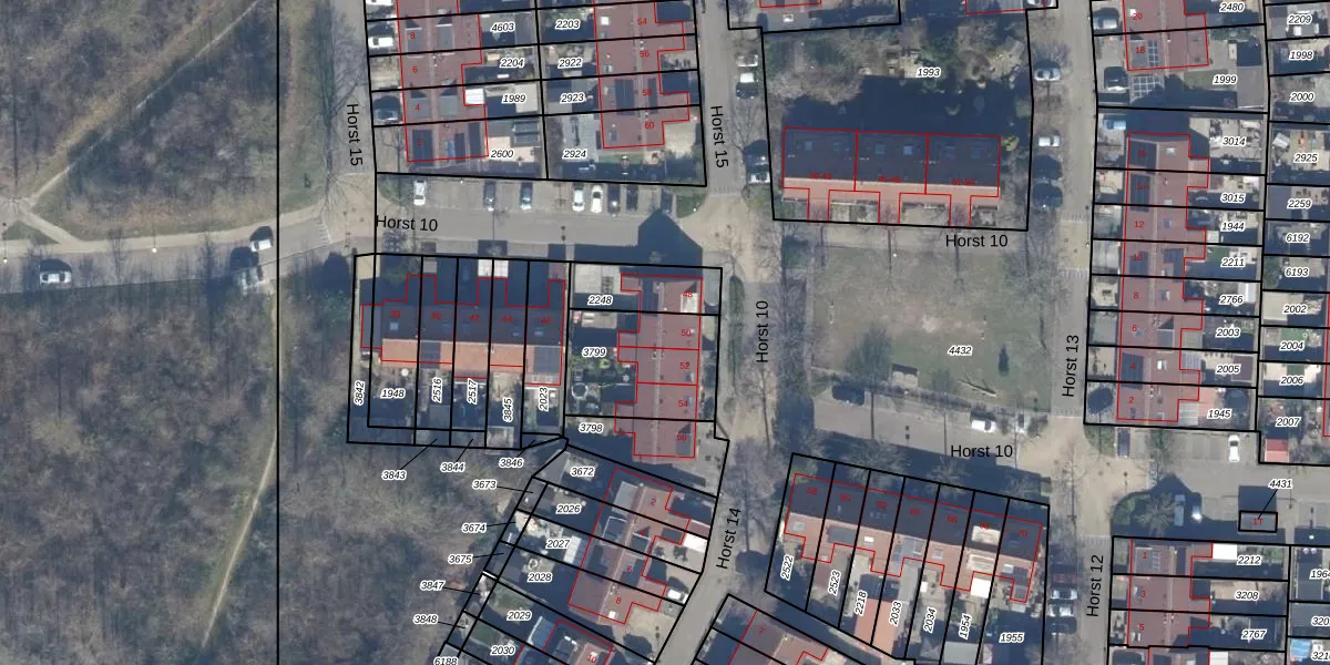Het perceel waarop Horst 10 50 staat heeft een oppervlakte van 363 m². Dit is een groot perceel. De perceeloppervlakte wordt geregistreerd door het Kadaster. Gedetailleerde informatie over de maten van dit perceel kunt u vinden in het rapport Kadastrale kaart met maatvoering van Horst 10 50.