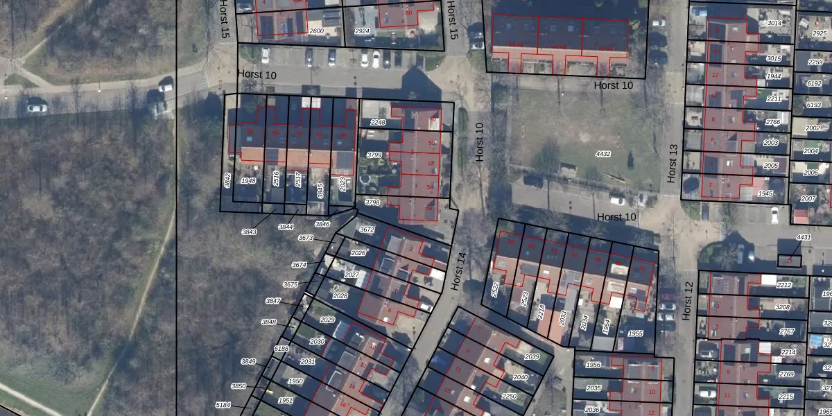 Het perceel waarop Horst 10 56 staat heeft een oppervlakte van 187 m². Dit is een middelgroot perceel. De perceeloppervlakte wordt geregistreerd door het Kadaster. Gedetailleerde informatie over de maten van dit perceel kunt u vinden in het rapport Kadastrale kaart met maatvoering van Horst 10 56.