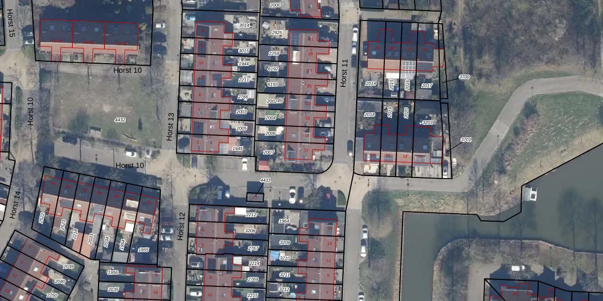 Gebruik de zoekbalk of klik op een perceel voor informatie over de adressen binnen dit perceel.