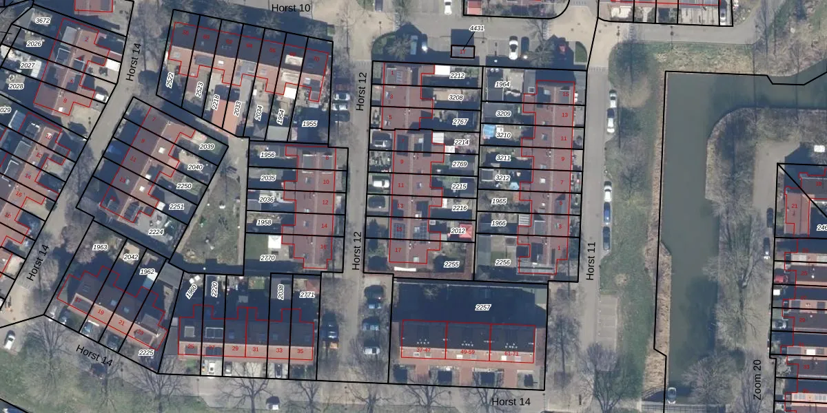 Gebruik de zoekbalk of klik op een perceel voor informatie over de adressen binnen dit perceel.