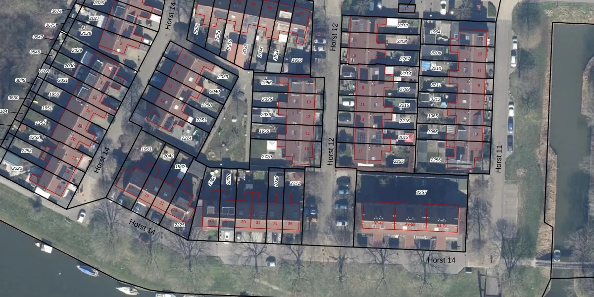 Het perceel waarop Horst 12 16 staat heeft een oppervlakte van 492 m². Dit is een groot perceel. De perceeloppervlakte wordt geregistreerd door het Kadaster. Gedetailleerde informatie over de maten van dit perceel kunt u vinden in het rapport Kadastrale kaart met maatvoering van Horst 12 16.