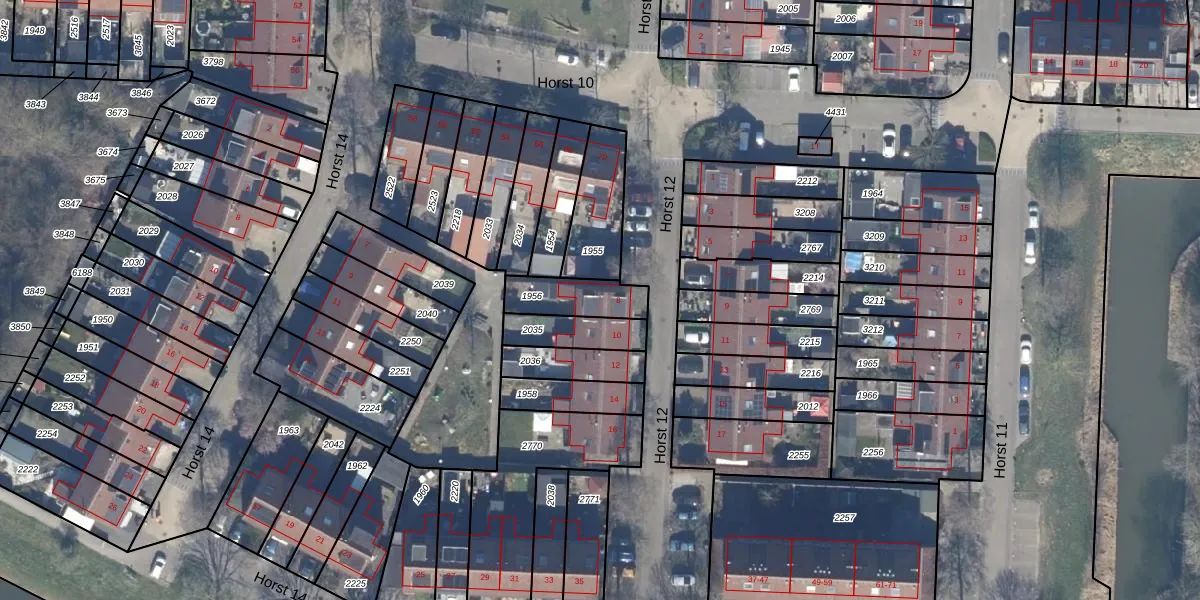 Gebruik de zoekbalk of klik op een perceel voor informatie over de adressen binnen dit perceel.