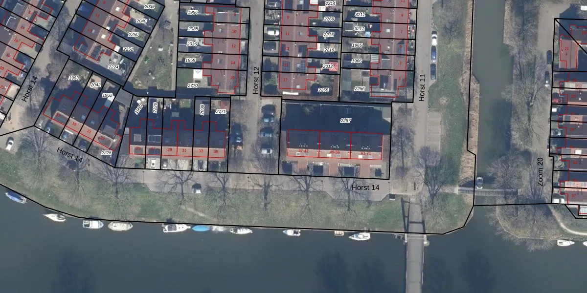 Het perceel waarop Horst 14 45 staat heeft een oppervlakte van 969 m². Dit is een groot perceel. De perceeloppervlakte wordt geregistreerd door het Kadaster. Gedetailleerde informatie over de maten van dit perceel kunt u vinden in het rapport Kadastrale kaart met maatvoering van Horst 14 45.