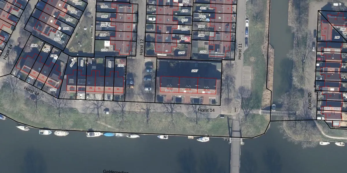 Het perceel waarop Horst 14 47 staat heeft een oppervlakte van 969 m². Dit is een groot perceel. De perceeloppervlakte wordt geregistreerd door het Kadaster. Gedetailleerde informatie over de maten van dit perceel kunt u vinden in het rapport Kadastrale kaart met maatvoering van Horst 14 47.