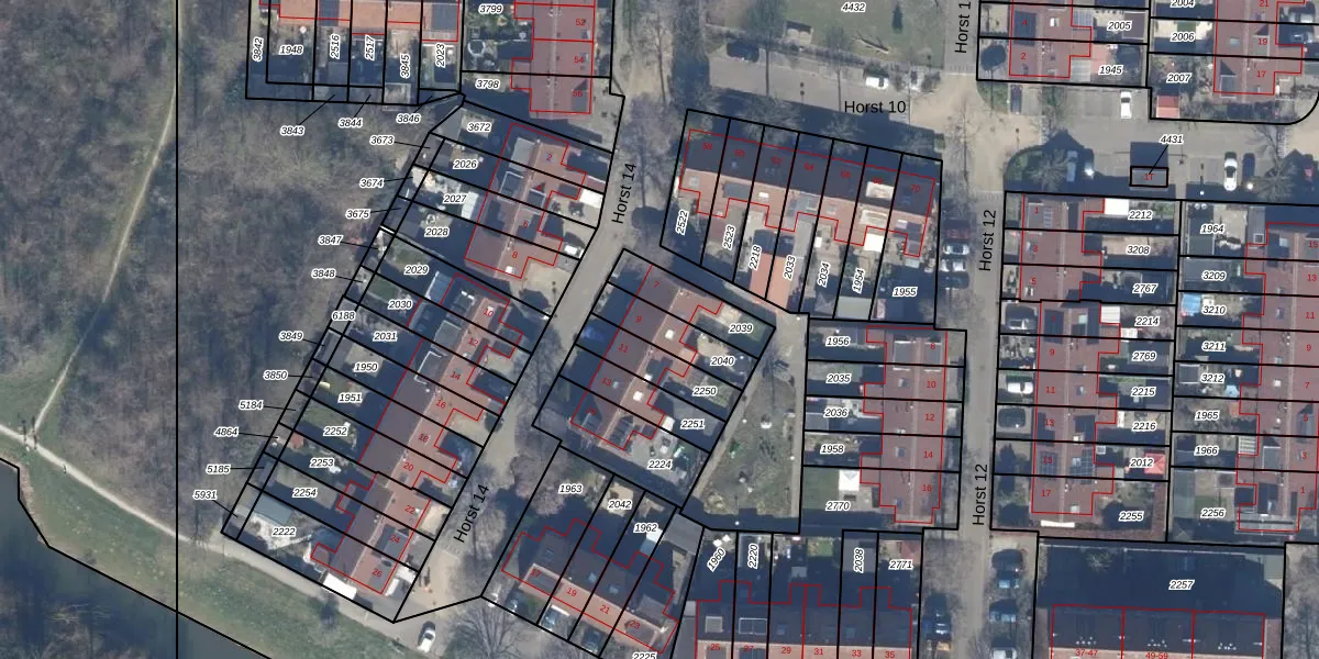 Horst 14 9 is gelegen op kadastraal perceel LLS00P2040. Deze kadastrale aanduiding is uniek en wordt gebruikt door het Kadaster om eigendomsrechten en andere zakelijke rechten vast te leggen. Het perceel maakt onderdeel uit van de kadastrale gemeente Lelystad.