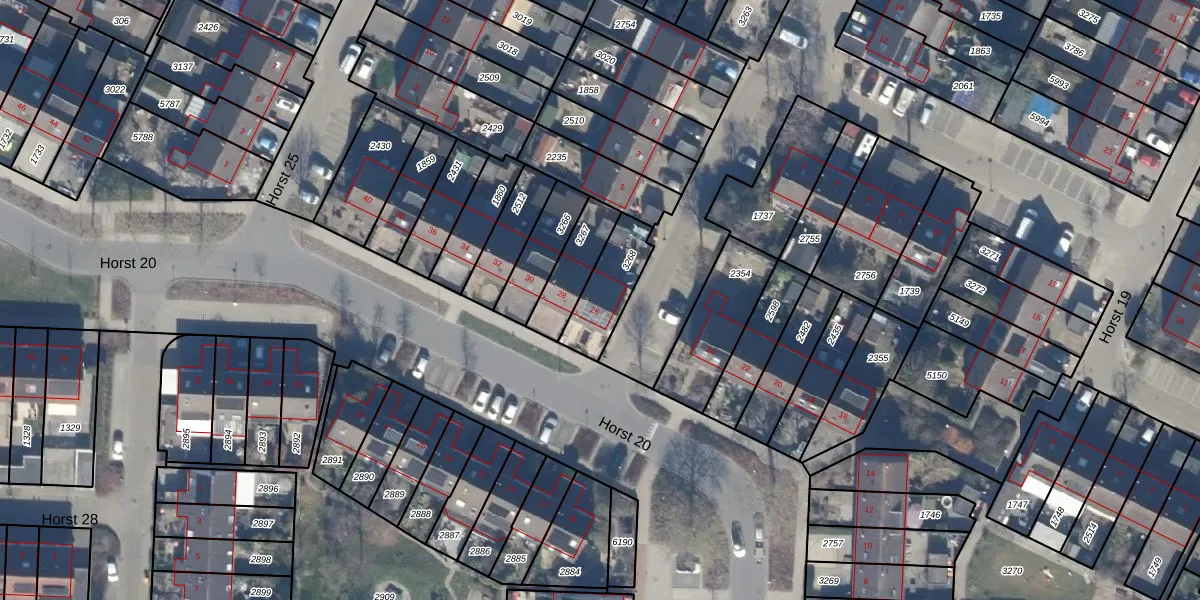 Gebruik de zoekbalk of klik op een perceel voor informatie over de adressen binnen dit perceel.