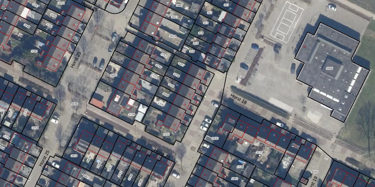 Gebruik de zoekbalk of klik op een perceel voor informatie over de adressen binnen dit perceel.