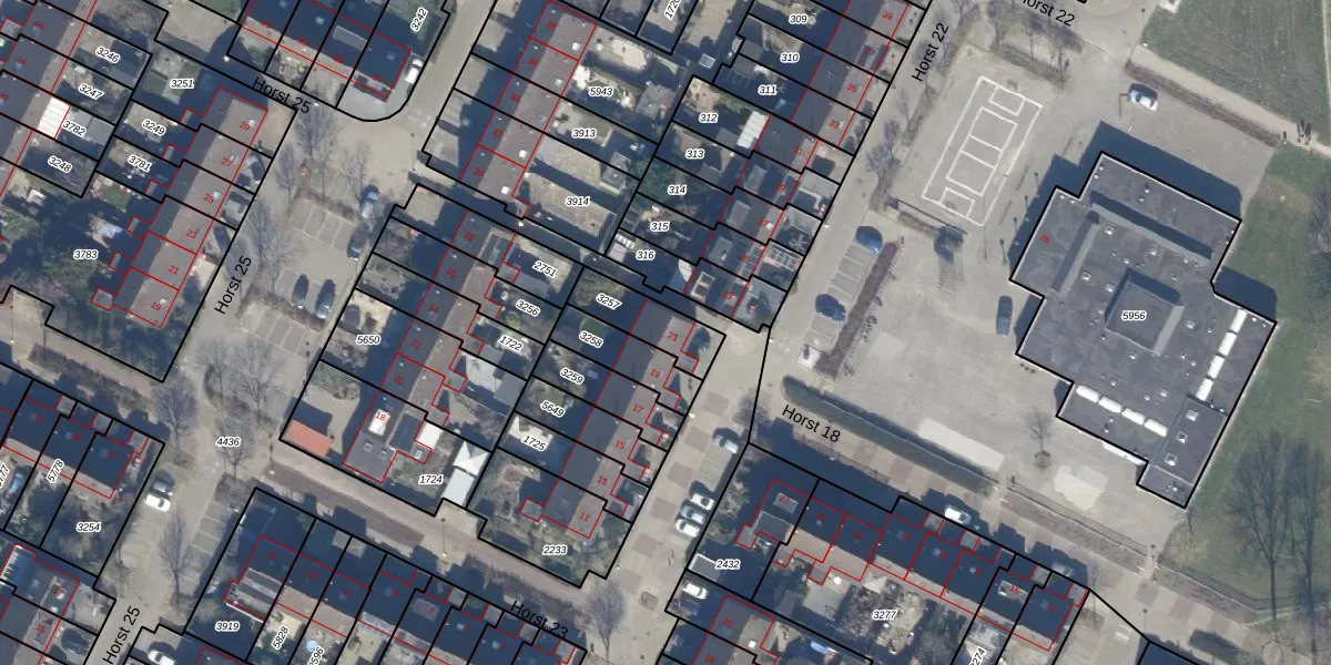 Gebruik de zoekbalk of klik op een perceel voor informatie over de adressen binnen dit perceel.