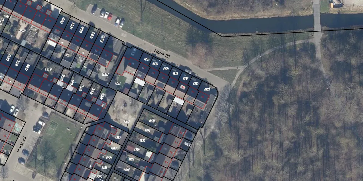 Het perceel waarop Horst 22 65 staat heeft een oppervlakte van 153 m². Dit is een middelgroot perceel. De perceeloppervlakte wordt geregistreerd door het Kadaster. Gedetailleerde informatie over de maten van dit perceel kunt u vinden in het rapport Kadastrale kaart met maatvoering van Horst 22 65.