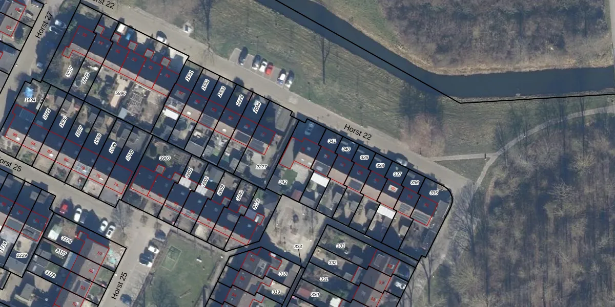 Gebruik de zoekbalk of klik op een perceel voor informatie over de adressen binnen dit perceel.