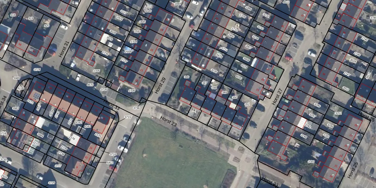 Gebruik de zoekbalk of klik op een perceel voor informatie over de adressen binnen dit perceel.