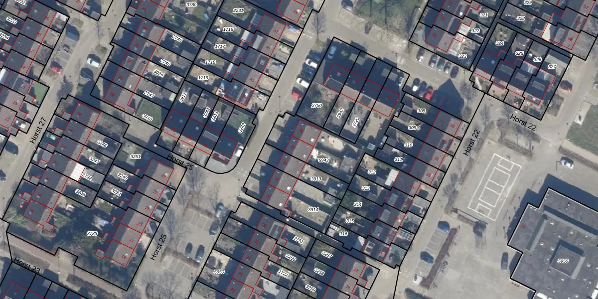 Het perceel waarop Horst 25 36 staat heeft een oppervlakte van 629 m². Dit is een groot perceel. De perceeloppervlakte wordt geregistreerd door het Kadaster. Gedetailleerde informatie over de maten van dit perceel kunt u vinden in het rapport Kadastrale kaart met maatvoering van Horst 25 36.