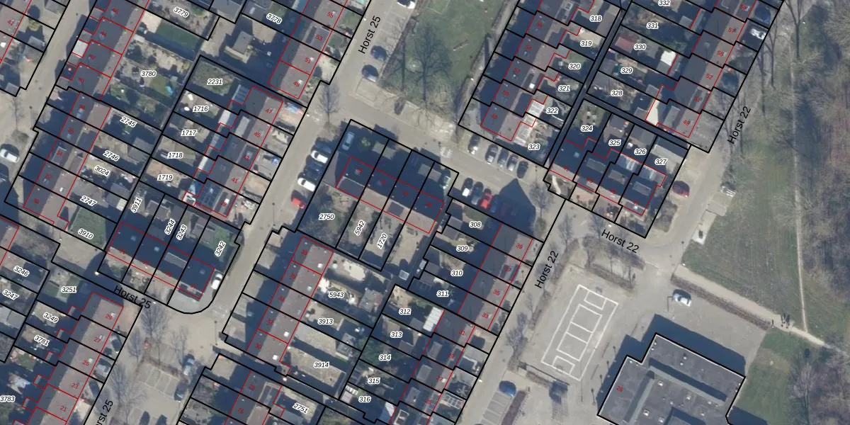 Het perceel waarop Horst 25 46 staat heeft een oppervlakte van 629 m². Dit is een groot perceel. De perceeloppervlakte wordt geregistreerd door het Kadaster. Gedetailleerde informatie over de maten van dit perceel kunt u vinden in het rapport Kadastrale kaart met maatvoering van Horst 25 46.