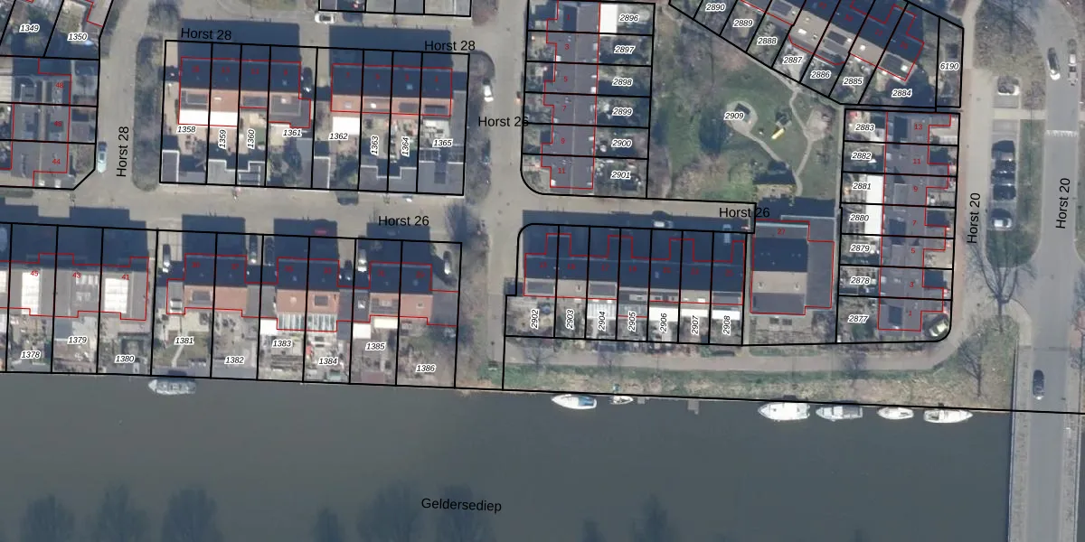 Het perceel waarop Horst 26 13 staat heeft een oppervlakte van 165 m². Dit is een middelgroot perceel. De perceeloppervlakte wordt geregistreerd door het Kadaster. Gedetailleerde informatie over de maten van dit perceel kunt u vinden in het rapport Kadastrale kaart met maatvoering van Horst 26 13.