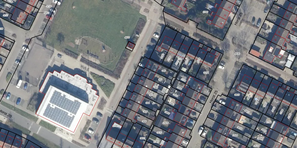 Horst 27 12 is gelegen op kadastraal perceel LLS00P301. Deze kadastrale aanduiding is uniek en wordt gebruikt door het Kadaster om eigendomsrechten en andere zakelijke rechten vast te leggen. Het perceel maakt onderdeel uit van de kadastrale gemeente Lelystad.
