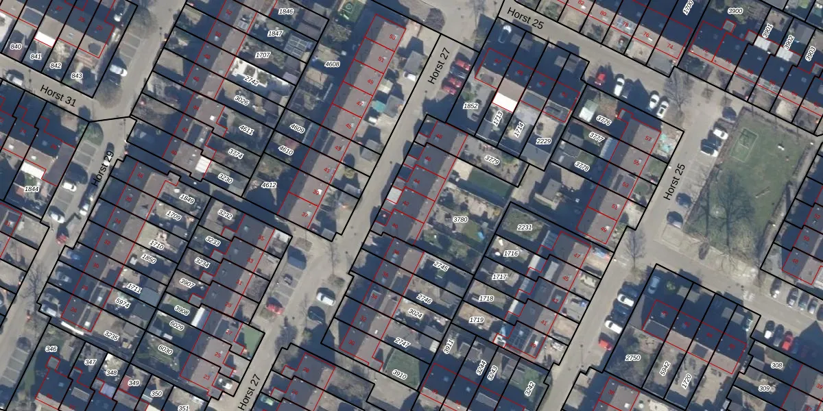 Het perceel waarop Horst 27 42 staat heeft een oppervlakte van 1036 m². Dit is een zeer groot perceel. De perceeloppervlakte wordt geregistreerd door het Kadaster. Gedetailleerde informatie over de maten van dit perceel kunt u vinden in het rapport Kadastrale kaart met maatvoering van Horst 27 42.