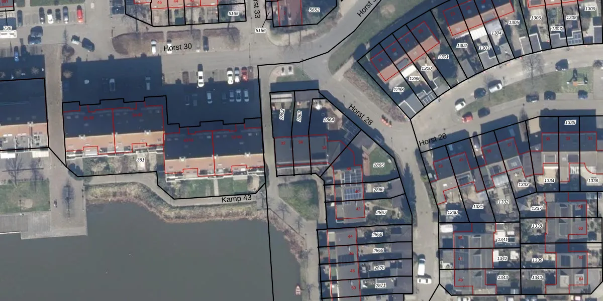Horst 28 34 is gelegen op kadastraal perceel LLS00P2863. Deze kadastrale aanduiding is uniek en wordt gebruikt door het Kadaster om eigendomsrechten en andere zakelijke rechten vast te leggen. Het perceel maakt onderdeel uit van de kadastrale gemeente Lelystad.