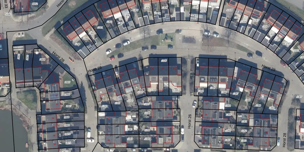 Het perceel waarop Horst 28 35 staat heeft een oppervlakte van 231 m². Dit is een middelgroot perceel. De perceeloppervlakte wordt geregistreerd door het Kadaster. Gedetailleerde informatie over de maten van dit perceel kunt u vinden in het rapport Kadastrale kaart met maatvoering van Horst 28 35.