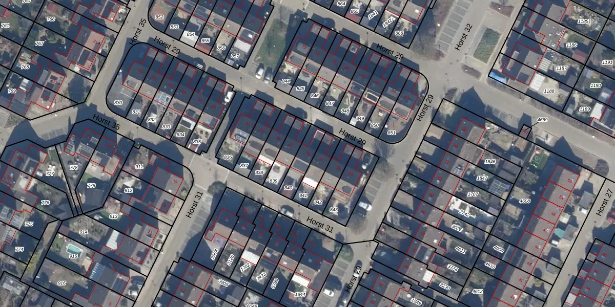 Het perceel waarop Horst 29 39 staat heeft een oppervlakte van 134 m². Dit is een middelgroot perceel. De perceeloppervlakte wordt geregistreerd door het Kadaster. Gedetailleerde informatie over de maten van dit perceel kunt u vinden in het rapport Kadastrale kaart met maatvoering van Horst 29 39.