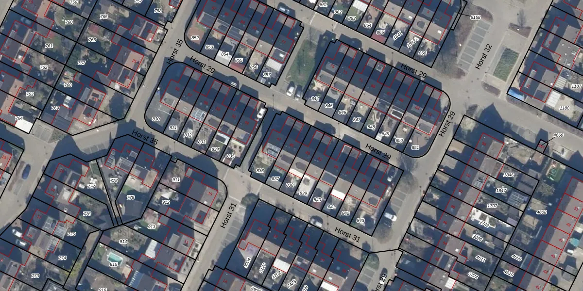 Het perceel waarop Horst 29 45 staat heeft een oppervlakte van 135 m². Dit is een middelgroot perceel. De perceeloppervlakte wordt geregistreerd door het Kadaster. Gedetailleerde informatie over de maten van dit perceel kunt u vinden in het rapport Kadastrale kaart met maatvoering van Horst 29 45.