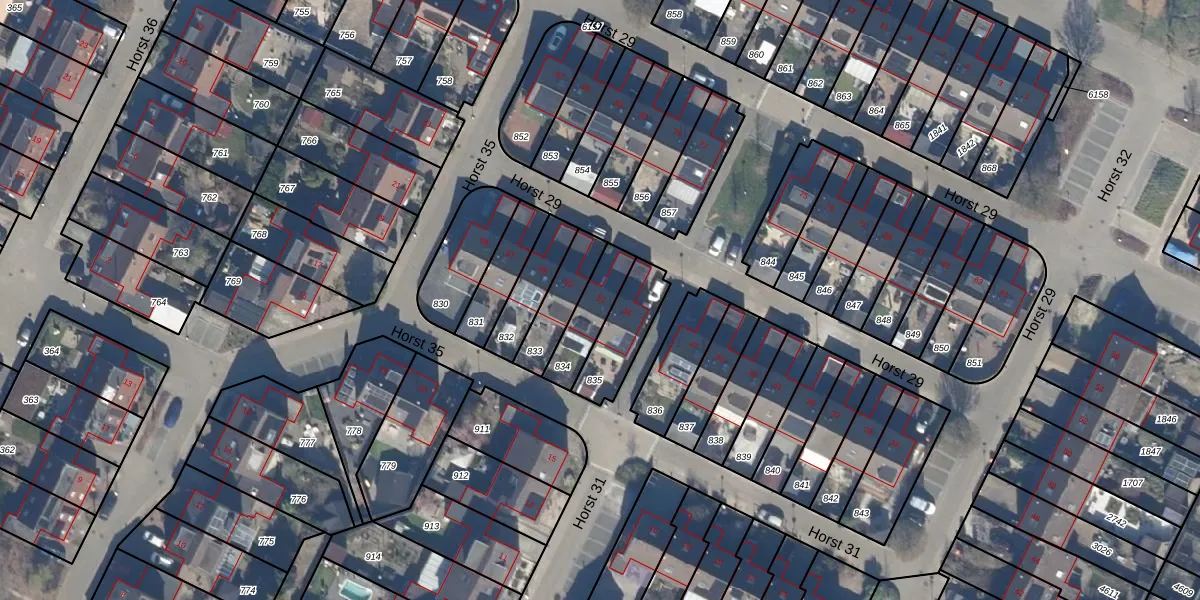 Het perceel waarop Horst 29 51 staat heeft een oppervlakte van 134 m². Dit is een middelgroot perceel. De perceeloppervlakte wordt geregistreerd door het Kadaster. Gedetailleerde informatie over de maten van dit perceel kunt u vinden in het rapport Kadastrale kaart met maatvoering van Horst 29 51.