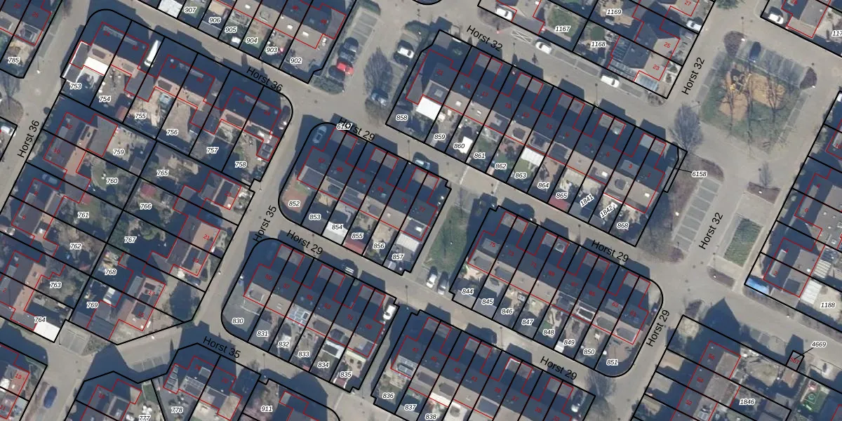 Het perceel waarop Horst 29 77 staat heeft een oppervlakte van 163 m². Dit is een middelgroot perceel. De perceeloppervlakte wordt geregistreerd door het Kadaster. Gedetailleerde informatie over de maten van dit perceel kunt u vinden in het rapport Kadastrale kaart met maatvoering van Horst 29 77.