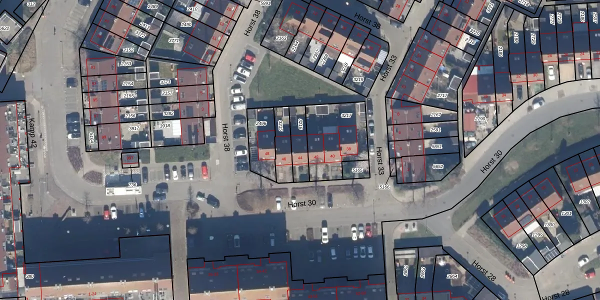 Gebruik de zoekbalk of klik op een perceel voor informatie over de adressen binnen dit perceel.