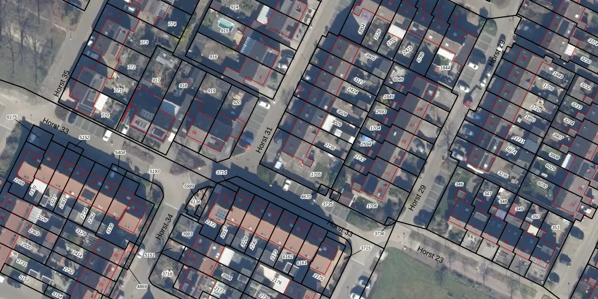 Het perceel waarop Horst 31 2 staat heeft een oppervlakte van 331 m². Dit is een groot perceel. De perceeloppervlakte wordt geregistreerd door het Kadaster. Gedetailleerde informatie over de maten van dit perceel kunt u vinden in het rapport Kadastrale kaart met maatvoering van Horst 31 2.