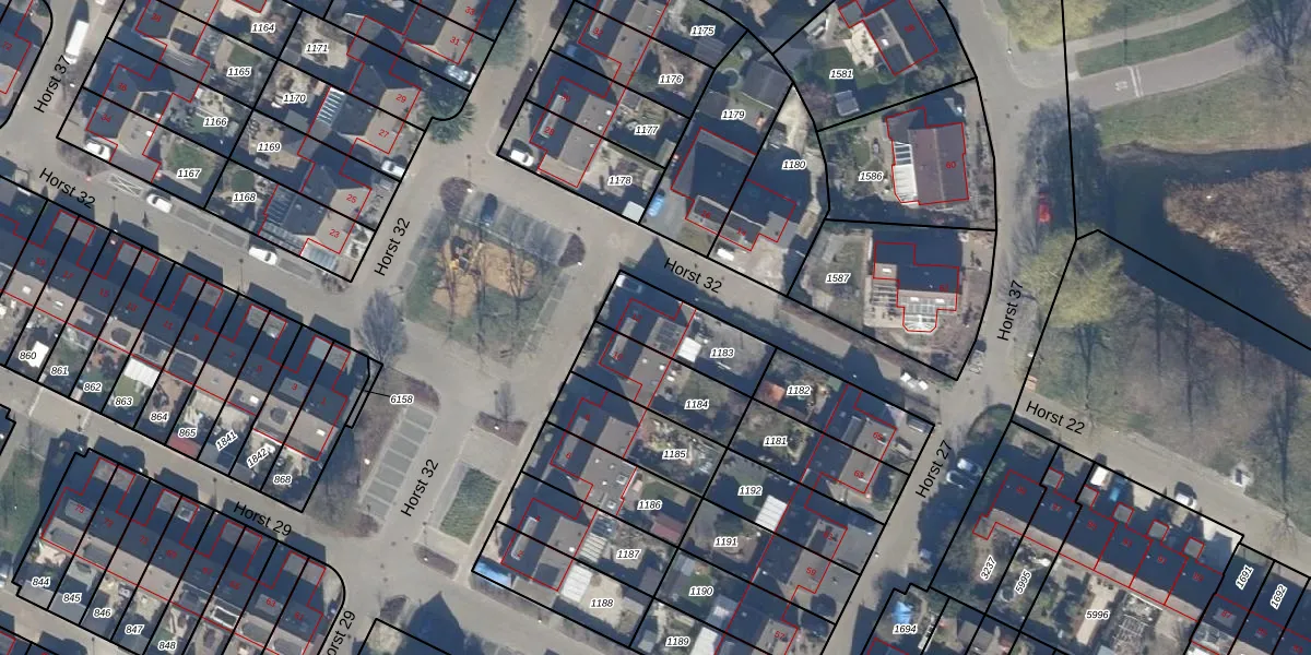 Gebruik de zoekbalk of klik op een perceel voor informatie over de adressen binnen dit perceel.