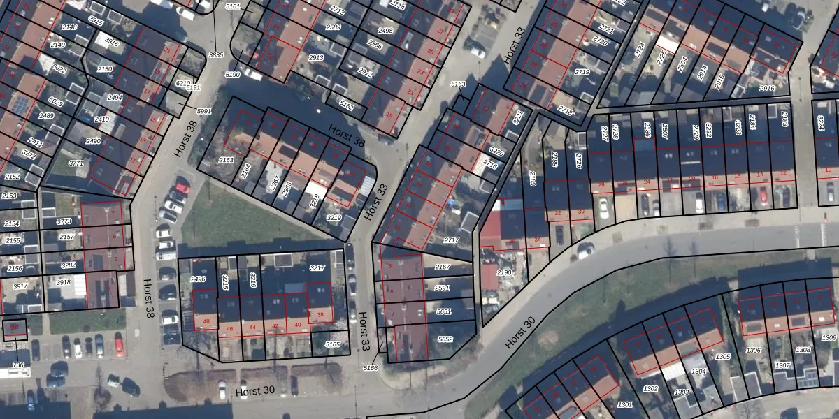 Het perceel waarop Horst 33 12 staat heeft een oppervlakte van 480 m². Dit is een groot perceel. De perceeloppervlakte wordt geregistreerd door het Kadaster. Gedetailleerde informatie over de maten van dit perceel kunt u vinden in het rapport Kadastrale kaart met maatvoering van Horst 33 12.