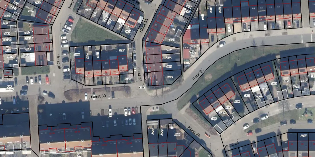 Horst 33 2 is gelegen op kadastraal perceel LLS00P5652. Deze kadastrale aanduiding is uniek en wordt gebruikt door het Kadaster om eigendomsrechten en andere zakelijke rechten vast te leggen. Het perceel maakt onderdeel uit van de kadastrale gemeente Lelystad.