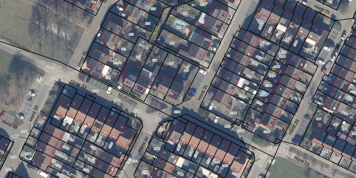 Het perceel waarop Horst 33 61 staat heeft een oppervlakte van 254 m². Dit is een middelgroot perceel. De perceeloppervlakte wordt geregistreerd door het Kadaster. Gedetailleerde informatie over de maten van dit perceel kunt u vinden in het rapport Kadastrale kaart met maatvoering van Horst 33 61.