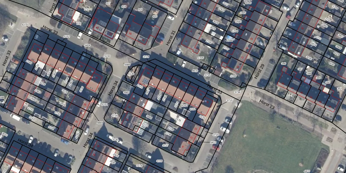 Het perceel waarop Horst 33 70 staat heeft een oppervlakte van 104 m². Dit is een middelgroot perceel. De perceeloppervlakte wordt geregistreerd door het Kadaster. Gedetailleerde informatie over de maten van dit perceel kunt u vinden in het rapport Kadastrale kaart met maatvoering van Horst 33 70.