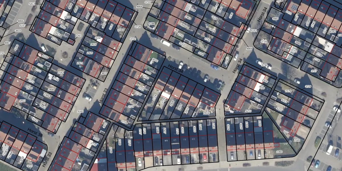 Gebruik de zoekbalk of klik op een perceel voor informatie over de adressen binnen dit perceel.