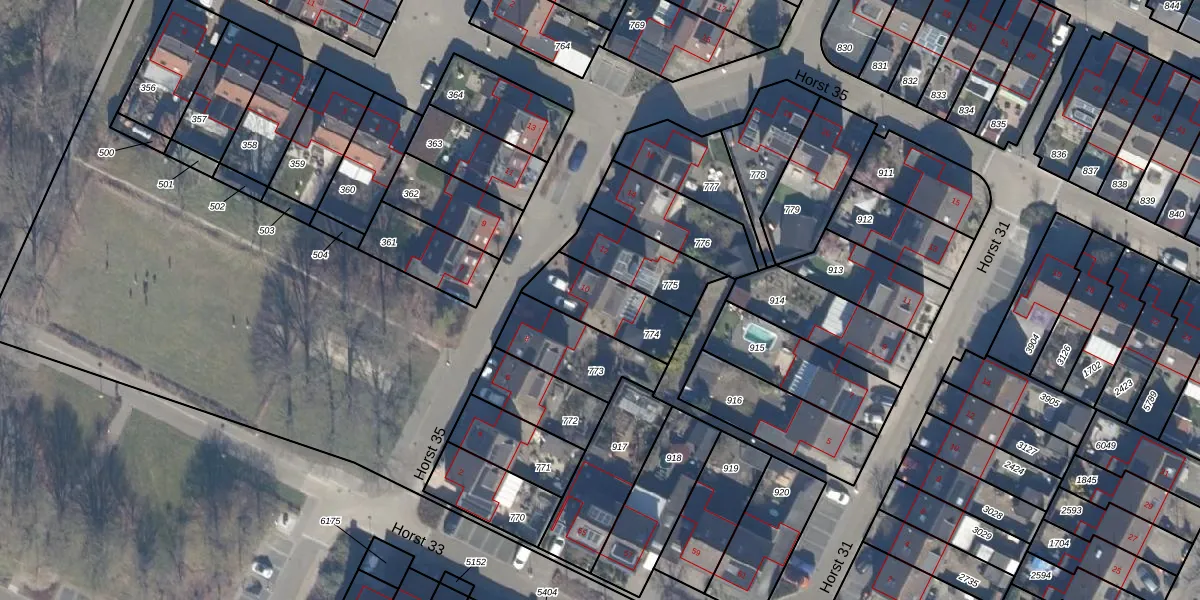 Gebruik de zoekbalk of klik op een perceel voor informatie over de adressen binnen dit perceel.