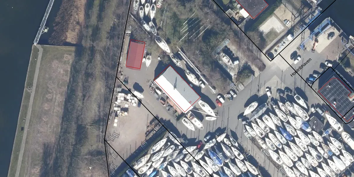 Het perceel waarop Houtribhaven 11 staat heeft een oppervlakte van 2,1 ha. Dit is een zeer groot perceel. De perceeloppervlakte wordt geregistreerd door het Kadaster. Gedetailleerde informatie over de maten van dit perceel kunt u vinden in het rapport Kadastrale kaart met maatvoering van Houtribhaven 11.