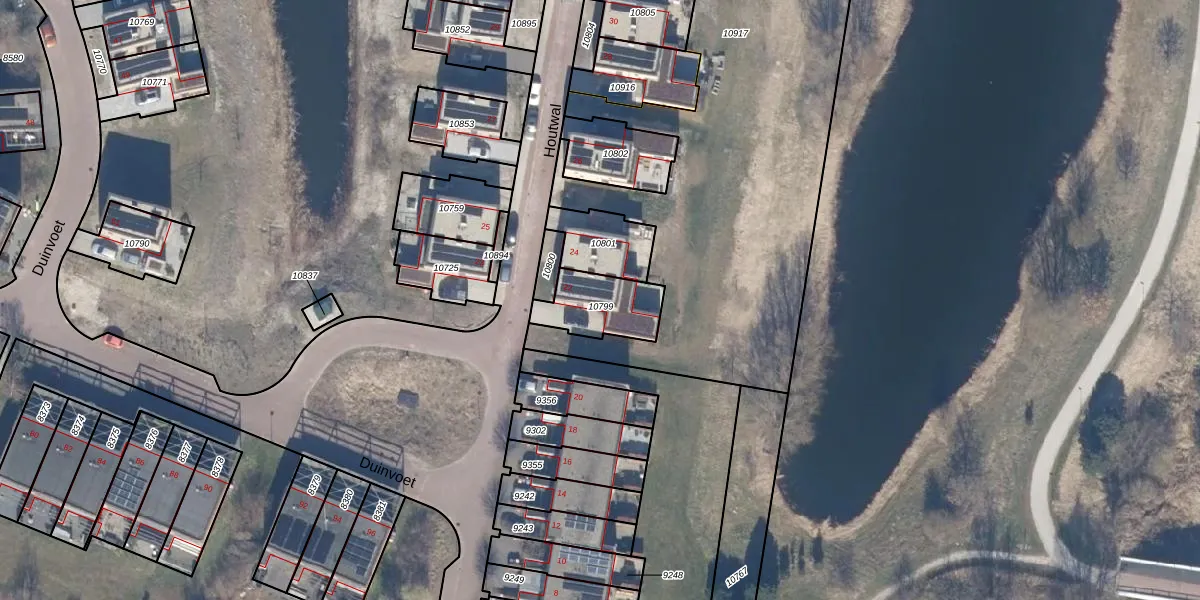 Gebruik de zoekbalk of klik op een perceel voor informatie over de adressen binnen dit perceel.