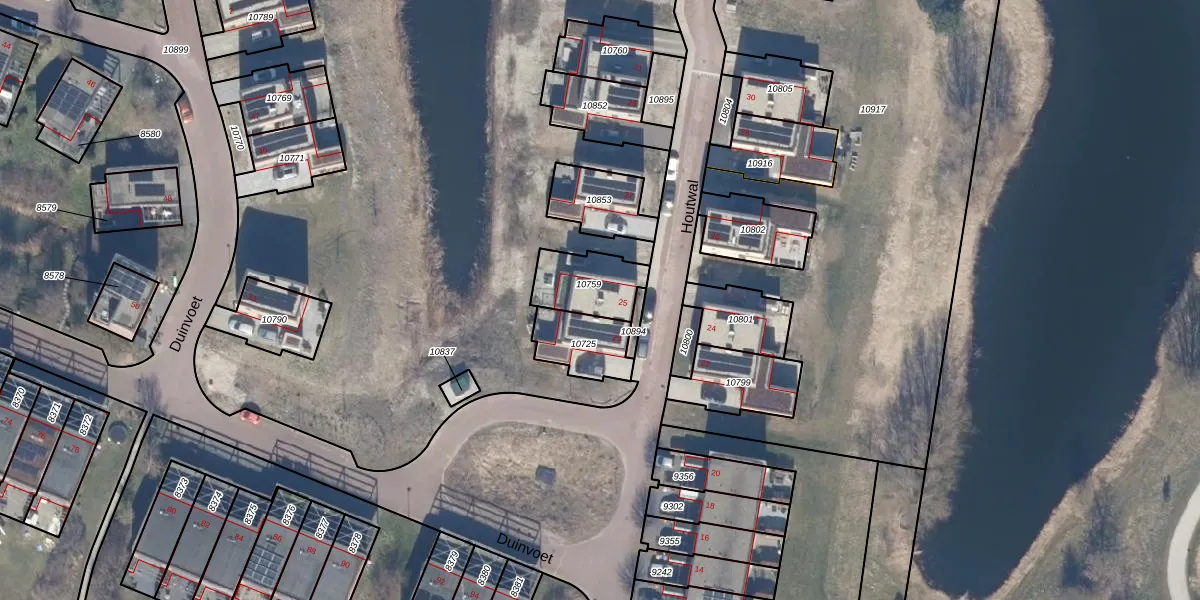 Gebruik de zoekbalk of klik op een perceel voor informatie over de adressen binnen dit perceel.