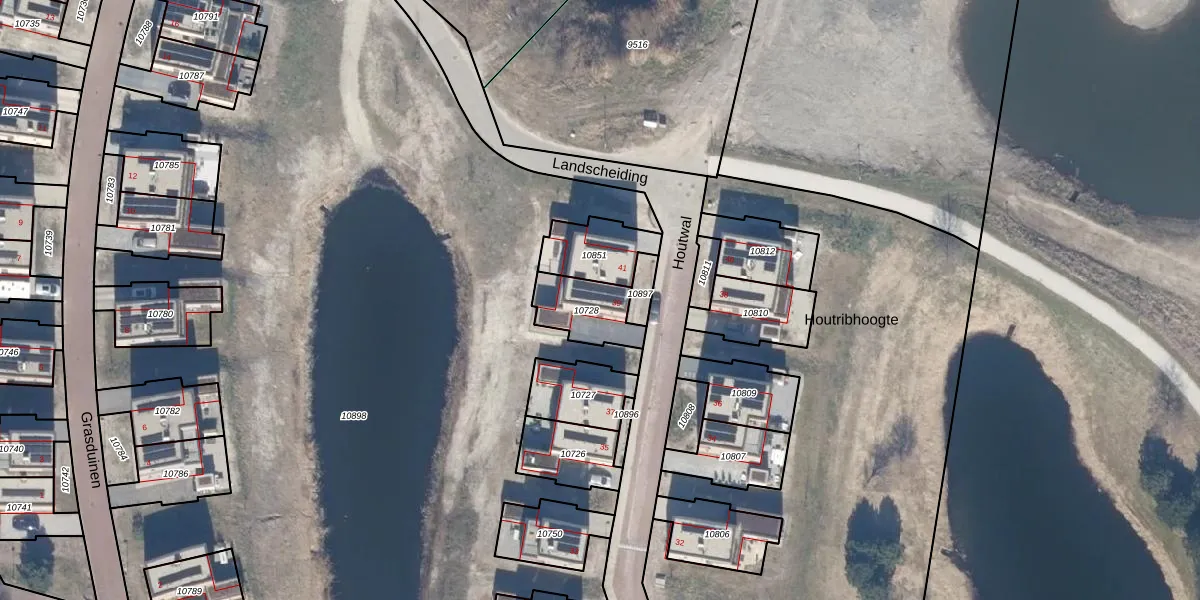 Gebruik de zoekbalk of klik op een perceel voor informatie over de adressen binnen dit perceel.